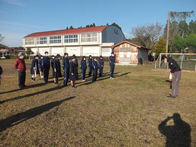本日:12月7日(水)、事務室が出火元という想定で火災の避難訓練を行いました。各学年、それぞれの教室で授業中という設定でしたので、職員が誘導し運動場へ避難しました。みんな、真剣にスピーディーに行動していました。今日も風があり寒い日でした。これから、ますます寒くなります。それに伴い『暖房器具』を使うことも多くなります。『火の取扱』には気をつけてください。(校長:鎌田浩二)