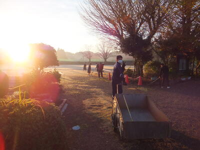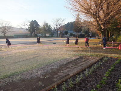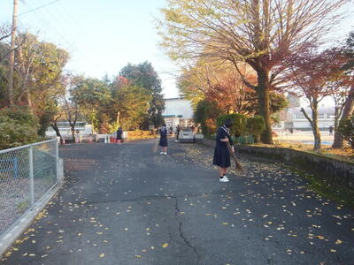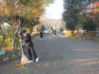 ※持久走大会のコース内の落ち葉を集めています。