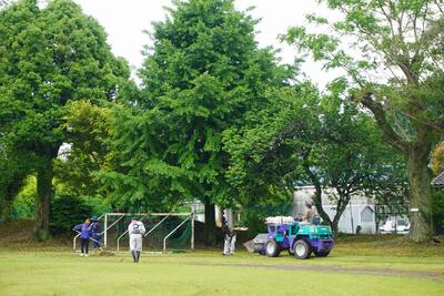 5月15日(月)、昨日は早朝7時からPTA奉仕作業が行われました。保護者の方々、小中の児童生徒、本校職員で、運動場の草刈りから整地、周辺の草抜き等の作業を行いました。重機や草刈り機などを用意していただき、日頃手の届かないところまできれいになりました。後半は、テントも立てていただきました。ケガもなく終わることができ、ありがとうございました。今週の運動会が楽しみです。