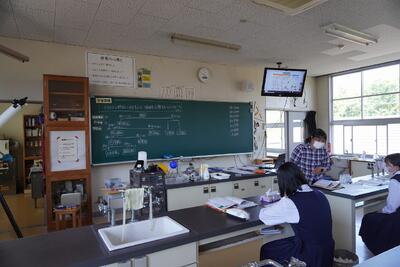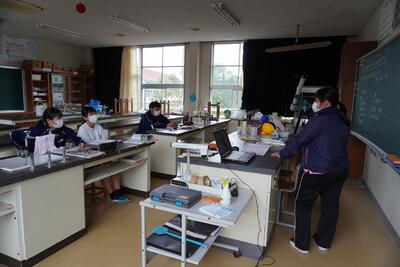 今日の授業のようすを載せておきます。ところで、理科室に入ってすぐの所に目を引く教材がいくつかあります。『でんじろう先生の実験教室』のようです。衝突球(ニュートンの揺りかご)の装置を見ると、1個ぶつけたら?2個ぶつけたら?と勝手に想像がふくらみます。理科担当の先生が、子ども達に、興味をもってもらうための実験コーナーですが、なぜか私までその術中にはまりそうです(笑)。