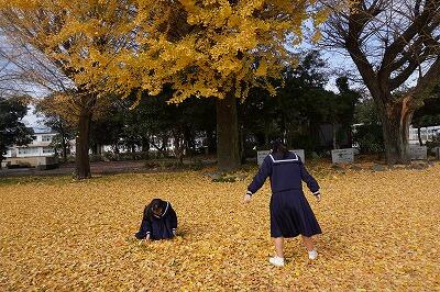 このところの寒さと風で、イチョウの葉が黄色くなり、落葉となりました。大量の葉が地面をおおい、きれいな絨毯のようです。毎年の光景ですが、これも見納めとなりますので、淋しくなりますね。