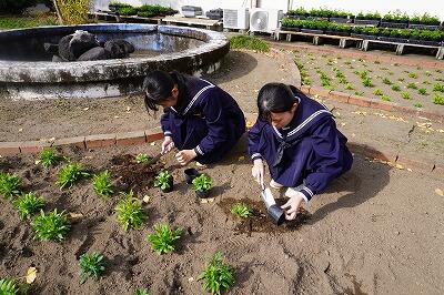 12月8日に、花壇に花の苗を植えました。ナデシコとノースポールの苗を用務員さんが育ててくださいました。きれいな花がたくさん咲くと良いですね。