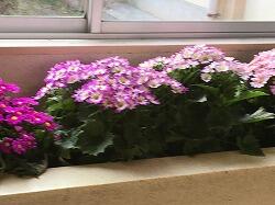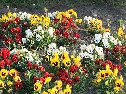 色とりどりのビオラが早春の陽ざしをあびて静かに生徒達の成長を見守ってくれているようです。