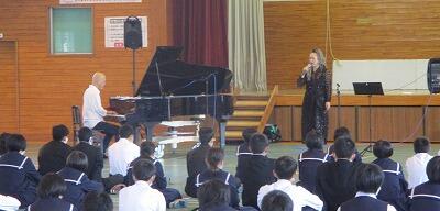 鑑賞教室がありました。「リベラ アンサンブル」と名付けて、ハープ奏者の古賀 鈴子(こが すずこ)さん、サクソフォン奏者の細山田 晃(ほそやまだ あきら)さん、パーカッション奏者の谷口潤実(たにぐち ひろみ)さんに楽器の紹介を含めて、クラシックからMISHIAや嵐のポップス、アニメソングなど様々な曲を演奏していただきました。普段鑑賞することの少ない、本格的な音楽を間近で鑑賞して、その魅力や楽しさを十分に味わうことができたのではないかと思います。