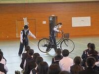 小林警察署と交通安全協会の方を講師に招き、交通安全教室を行いました。DVD視聴では事故につながる自転車運転の例がいくつもあり、特に交差点では日ごろから十分に気をつけて安全運転に努めなければならないと思いました。最後に生徒会生活環境委員長がお礼のあいさつをしました。