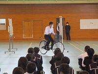 5月7日に小林警察署交通課の方と交通安全協会の指導員の方を講師に、交通安全教室が行われました。自転車の点検のポイントや安全確認など自転車の実技指導、交通事故の発生状況や自転車の乗る際の注意点について教えていただきました。自転車に乗る際は、今日の交通安全教室で学んだことを生かして、交通ルールを守り、安全に乗ってほしいと思います。
