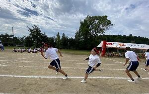 コロナウイルス感染症の対策として、規模を縮小し午前中だけの開催となりましたが、徒競走や100m・200mの選抜走、学級対抗リレーや学年ごとの団技、各団の応援ダンスなど、予定していたプログラムをすべて実施することができました。この日を迎えるまで実行委員や生徒会、団長、副団長、リーダーを中心に本当に良く準備、練習を行ってきました。