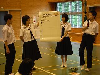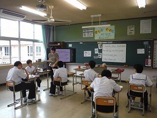 1年生が入学して、2ヶ月半になろうとしています。中学校で新しく学習しているのが、英語です。ご覧のとおり楽しい授業が行われています。ペア学習、グループ学習等会話活動も意欲的に取り組んでいます。コミュニケーション能力を育成することを目標に「わかる授業」に取り組んでいます。