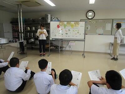 5月15日(火)に、野尻学校給食センターを1学年6名の生徒、学級担任、給食主任、校長の計9名で、調理の様子などを見学しました。所長はじめ栄養士の方々から、丁寧で、わかりやすい説明がありました。説明の中で、献立の留意点として、「ま・ご・は(わ)・や・さ・し・い」という語呂合わせで、色々な食材を使って、栄養のバランスのよい食事になるようにしていると言われました。とても有意義な見学となりました。いつもたいへん美味しい給食をありがとうございます。