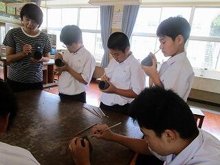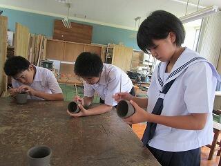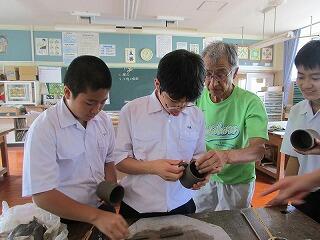 平成30年7月4日(水)に、先日の陶芸教室で作った作品の把手付けの指導が美術室で講師の園田先生からありました。1年生の生徒、職員が参加して行われました。立派な陶器ができるといいですね。