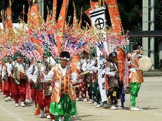 紙屋小学校の上学年児童による「城攻め踊り」の一コマです。衣装をつけて初めての練習披露となりました。踊り出すと迫力がありますね。本番が本当に楽しみです。あとは雨が降らないことを祈るばかりです。なお、城攻め踊りの披露は雨天のときは中止となります。