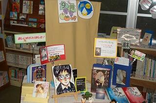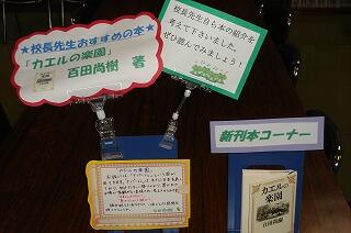毎月、図書室内に図書館支援センター協力員の松吉先生によって、工夫され、アイデアにとんだ企画もののコーナーが生徒に人気です。季節に応じて、新書コーナーは読んでみたくなるような掲示になっています。中には校長先生推薦の本も展示してあります。毎日図書室に行って、話題の本が読めるので楽しみです。松吉先生、いつもありがとうございます。