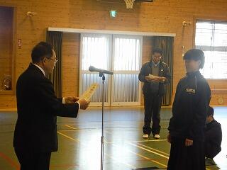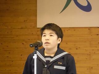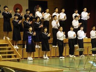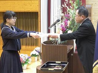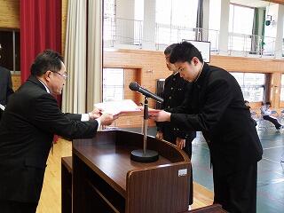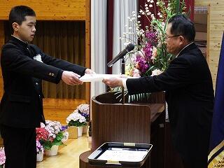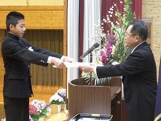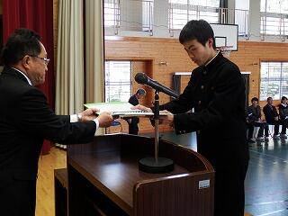 平成31年3月26日(火)に修了式がありました。1、2年生の代表者に松原校長先生から修了証が授与されました。また、1年の園田さんと2年の河野くんが年間反省を発表しました。明日から春休みになります。校長先生から「一番は命。命を大切に有意義な春休みにしてほしい。」と言われました。また、春休みには日頃できないこと(例えば料理を親子で作ったり、趣味を楽しんだり、乗り物酔いの克服訓練など)取り組みましょう。