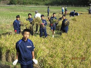 紙屋小・中学校合同稲刈り