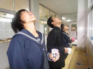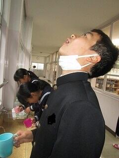 平成30年11月26日からお茶うがいがスタートしました。全校生徒がマイコップ持参で2校時終了後(10:30~)から、感染症対策の一環として、例年実施しているようです。風邪の予防に頑張っています。