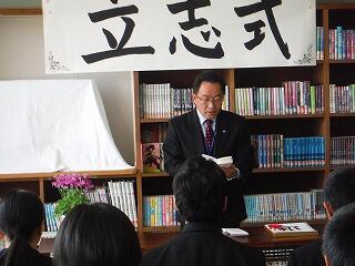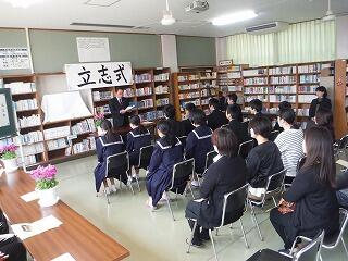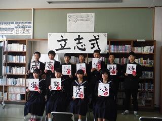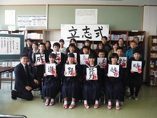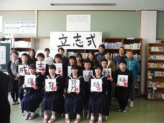 平成31年2月26日(火)に2年生を対象に、立志式が本校図書室で行われました。来賓として、小林市教育委員会教育委員の槇様をはじめPTA会長さん、区長さん方が出席され、松原校長先生からは、クラーク博士の”Boys be ambitious!(少年よ、大志を抱け)まつわる”志”の話や”世の中の役に立つ人になりましょう!”等の話が式辞でありました。無事に終了しました。来賓の方々から、たいへんきちんとしていて良かったと評価していただきました。2年生は誓いの言葉を1文字~2文字を掲げ、これからの目標等を発表しました。今後が楽しみです。