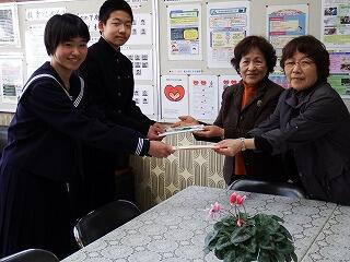 平成31年3月5日(火)に、小林地区更生保護女子会の2名の方々が来校されて、昨年度に引き続き、今年度も校長室で「しおり」の贈呈がありました。代表で旧生徒会役員の2名が受け取りました。手作りの「しおり」で、作成していただいた方々のまごころが感じられます。時々「しおり」の文字等を見て、心豊かな、たくましい人になってほしいものです。ありがとうございました。