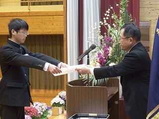平成31年3月16日(土)に第72回卒業証書授与式が挙行されました。卒業生一人一人に卒業証書(校長先生の浄書)が松原校長先生から授与されました。来賓の方々もたくさん出席していただきました。校長先生から式辞があり、小林市教育委員会からは深田利広様に告辞を賜り、PTA会長の藤田様から祝辞をいただきました。在校生から送辞のあと、答辞を前生徒会長の小田くんが述べました。本当に思い出に残る一日となりました。支えていただいた保護者や地域の方々まことにありがとうございました。