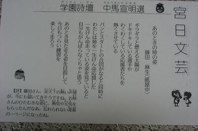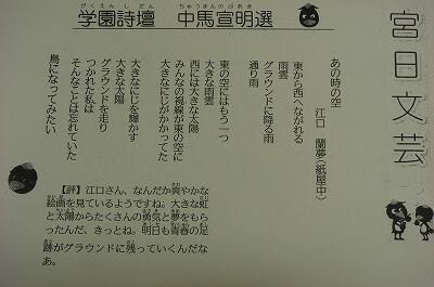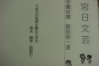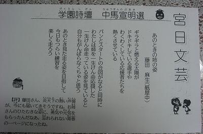 令和元年9月28日(土)宮日文芸 学園詩壇 中馬宣明選に掲載されました。おめでとう!宮崎日日新聞社提供