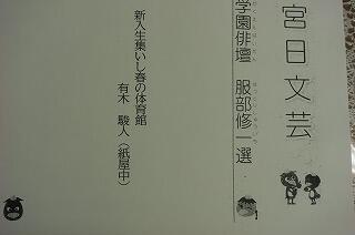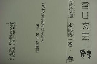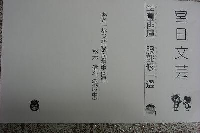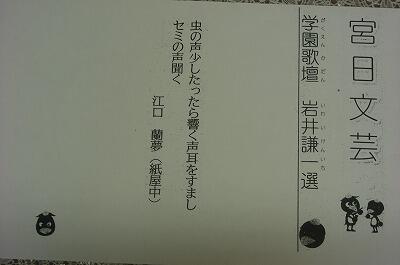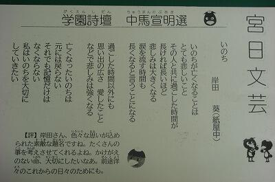 令和元年8月31日(土)宮日文芸 学園歌壇 岩井謙一選と学園詩壇 中馬宣明選「いのち」で見事に掲載されました。おめでとう!また頑張ってください。宮崎日日新聞社提供