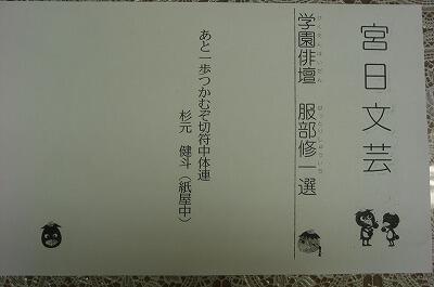 令和元年7月13日付けの宮日文芸 学園俳壇 服部修一選に2点と7月20日付けの学園歌壇 岩井謙一選で1点 生徒作品が掲載されました。おめでとう!宮崎日日新聞社提供