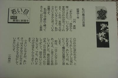 令和元年12月3日付け「窓」蘭「若い目」に見事に掲載されました。