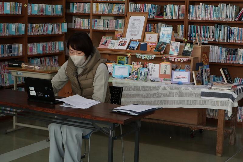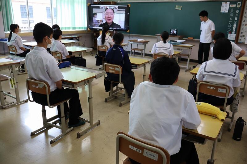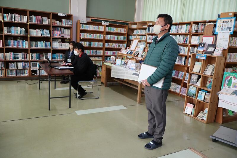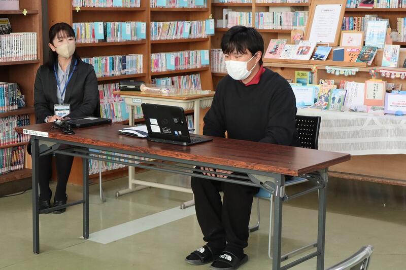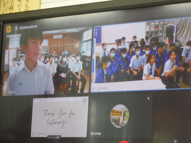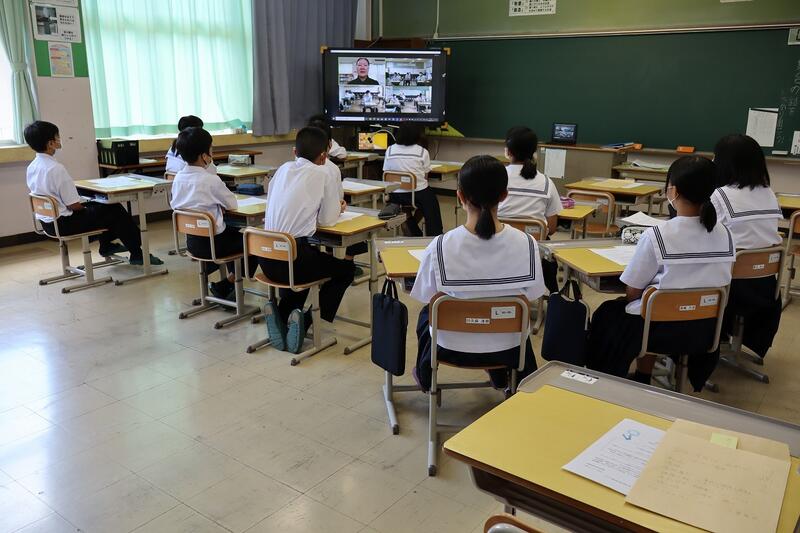感染症対策として、図書室に本部を置いて各クラスをつなぐZOOM形式での集会としました。どのクラスでも画面を見つめ、しっかりと話を聞く姿が見られました。
