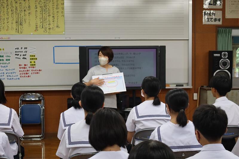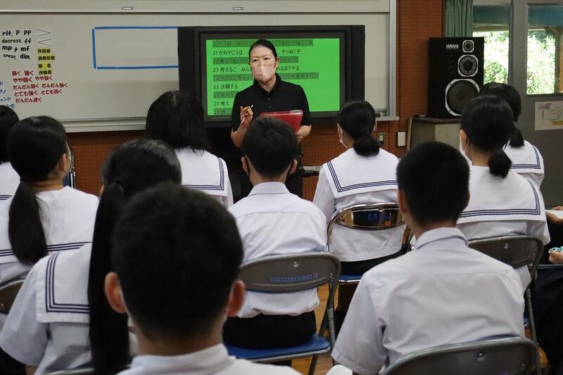 9月12日(金)、3年生が手話教室を実施しました。野尻地区の手話サークルから、野尻2区の区長としてお世話になっている圖師 春義様をはじめ、4名の講師の方々がお越しくださり、丁寧にご指導くださいました。生徒たちは楽しみながら手話を学ぶことができ、大変貴重な学びの場となりました。