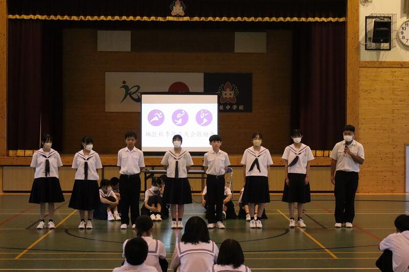 9月24日(火)の紙屋タイムに、9月末から10月初旬にかけて開催される、西諸県地区秋季体育大会に向けて、選手激励会を実施しました。