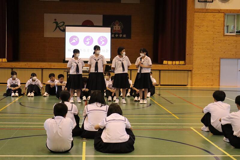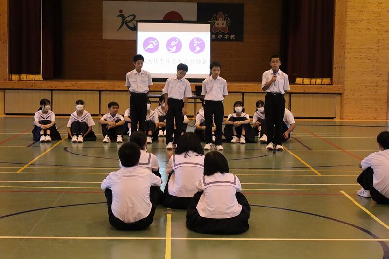 5月27日(火)、第76回西諸地区中学校総合体育大会、クラブチーム県中学校総合体育大会予選会に出場する選手の激励会を実施しました。紙屋中学校からは、地区中学校総合体育大会のバドミントン競技、陸上競技、女子バレーボール競技(細野中と合同)に、クラブチーム予選会の男子バレーボール競技、軟式野球競技に参加します。これまで関わってくださったすべての方々への感謝の気持ちを忘れず、努力の成果を十分に発揮してくれること願っています。