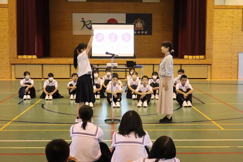 7月19日(金)の4校時、9月14日(土)に開催予定の小中合同運動会に向けて、結団式を行いました。