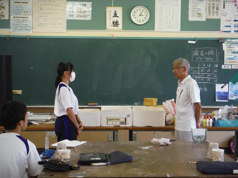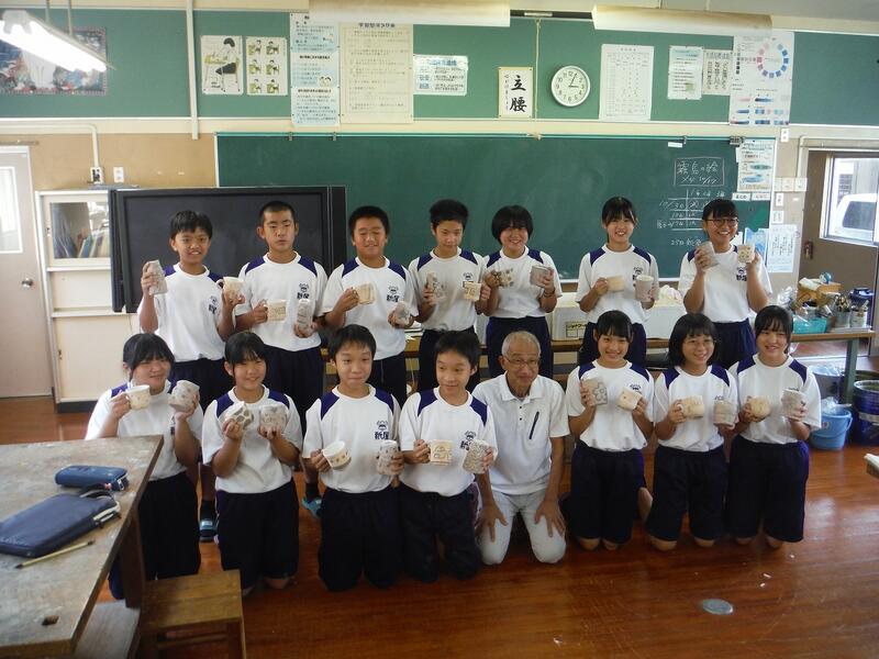 10月10日(木)の5,6校時、いつも地域でお世話になっている園田 貞哉様を講師にお迎えし、陶芸教室の2回目として、絵付け教室を行いました。