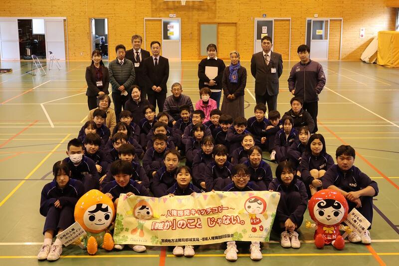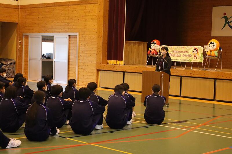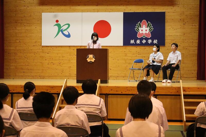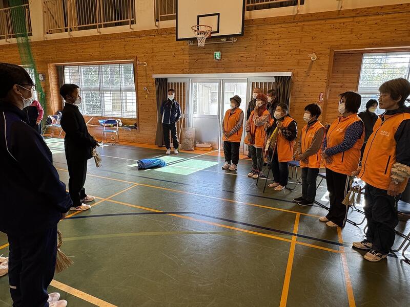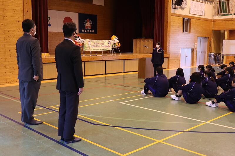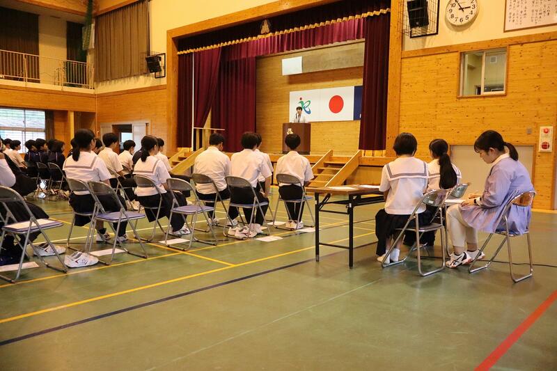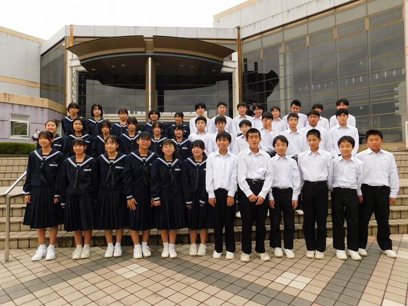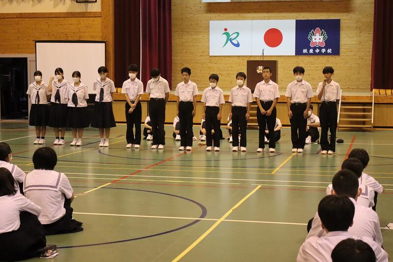 エール交換では、隣の野尻中学校と合同の取組で、姉妹都市でありる石川県能登町へのエールを送りました。