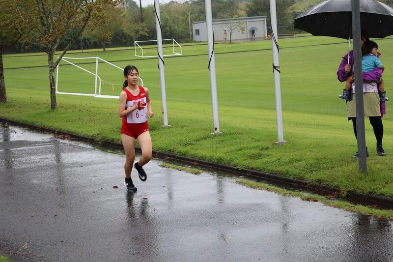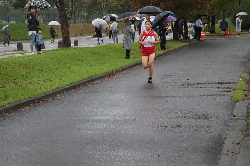 当日は時折大雨の降る悪天候の中、女子駅伝がスタートしました。4区を走っているところで雷が鳴り、どうなるかと心配しましたが、中断されることなく無事にゴールすることができました。