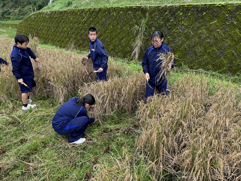 6月13日(金)、小学校5年生と中学生で田植えを実施しました。天候を心配していましたが、当日は雨も降ることなく、30度を越える暑さの中での田植えとなりました。今年も杉元コーディネーターの指導の下、保護者の方々にもご協力いただき、無事に田植えを終えることができました。ご協力いただきました保護者の皆様、ありがとうございました。