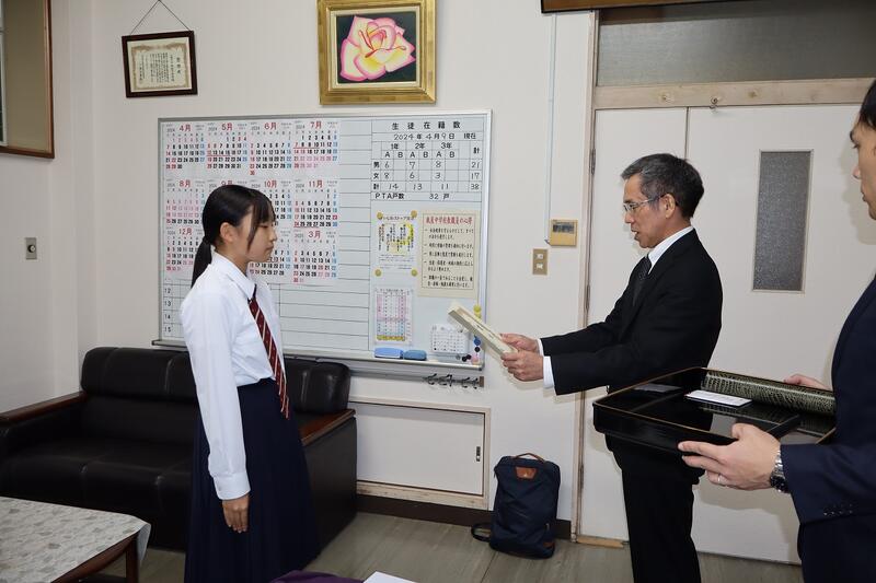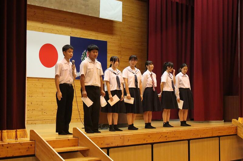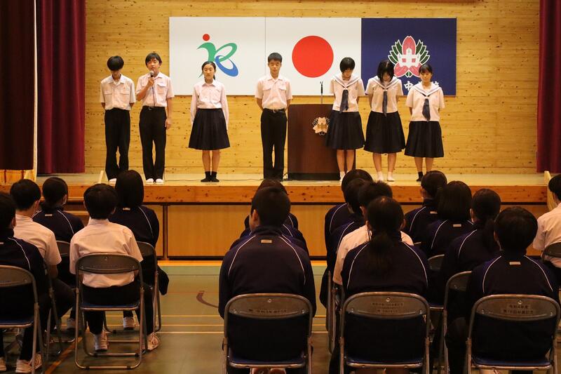 新任式では、新しく赴任された5名の先生方の紹介があり、3年生の濱嶋 凜さんが温かい歓迎の言葉を述べてくれました。