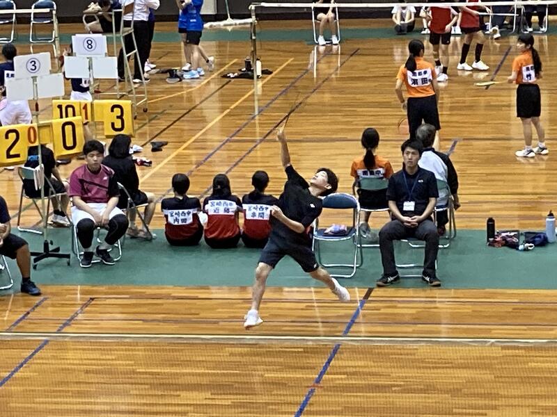 バドミントン競技では、男子団体戦に2年生の家村 嘉翔さん、原口 統真さん、1年生の前谷 友洋さんが出場し、3人というハンディがありながらも、見事3位に入賞し、県大会出場を勝ち取りました。