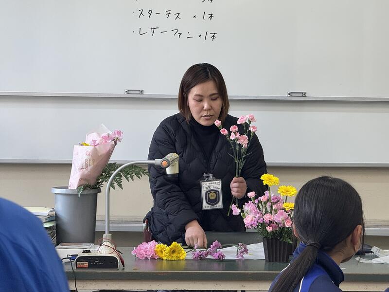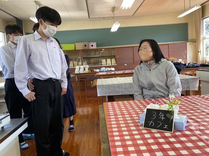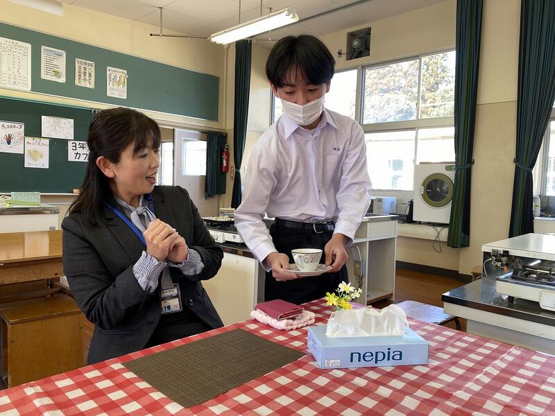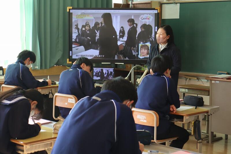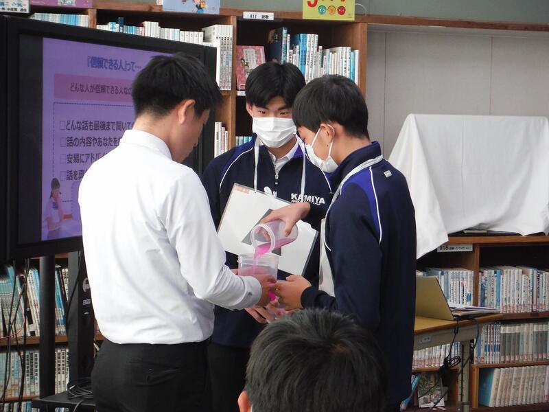 大土手先生とともに、良い断り方と悪い断り方のデモンストレーションを行い、どのような断り方が良いかを生徒に考えさせて発表してもらいました。