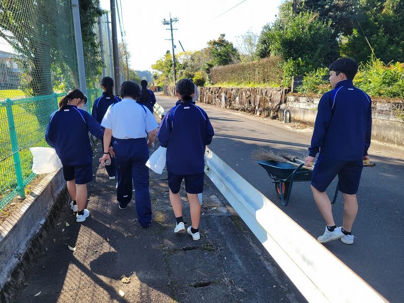 授業後は、運動会に向けてグラウンドや校舎周りの草刈と花壇の草抜きなどを行い、1時間ほどでスッキリと見違えるようにきれいになりました。生徒たちも進んで動けるようになってきており、頼もしく感じました。保護者の皆様も、暑い中本当にありがとうございました。