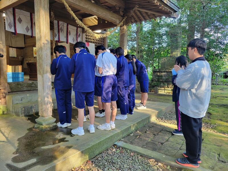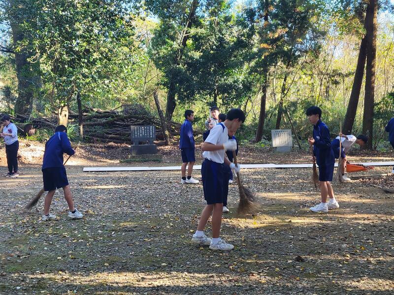 11月21日(金)、1年生と3年生が高妻神社の清掃を行いました。ほぜ祭り前の恒例行事として毎年実施している行事ですが、落ち葉掃きや社務所、トイレ掃除などに一生懸命取り組んでくれました。清掃の後には、宮司の吉村さんに3年生の合格祈願を兼ねて、お祓いをしていただきました。ありがとうございました。