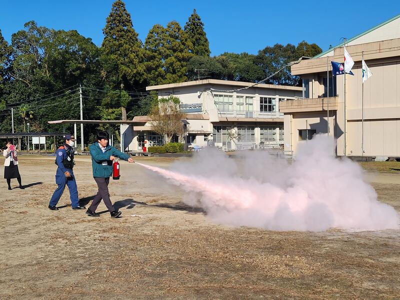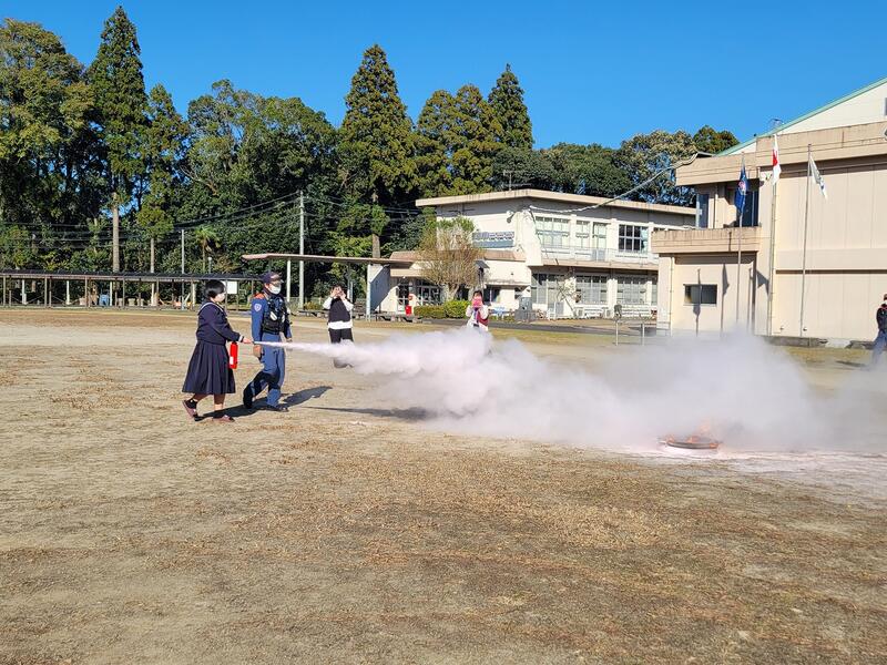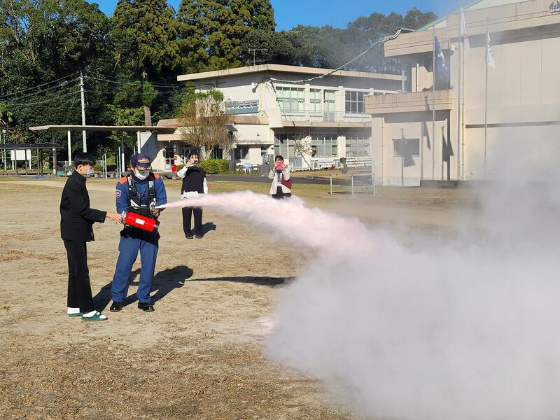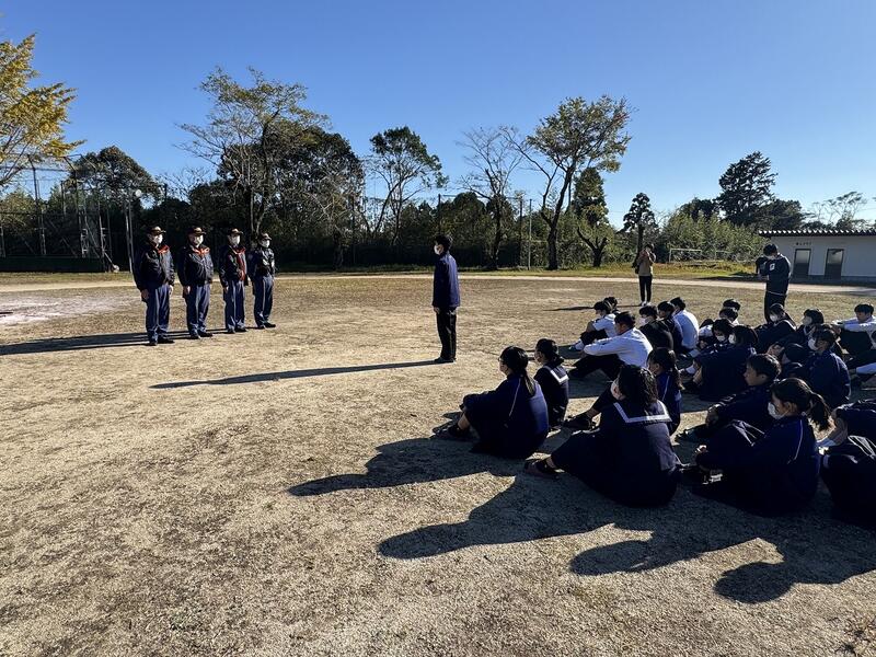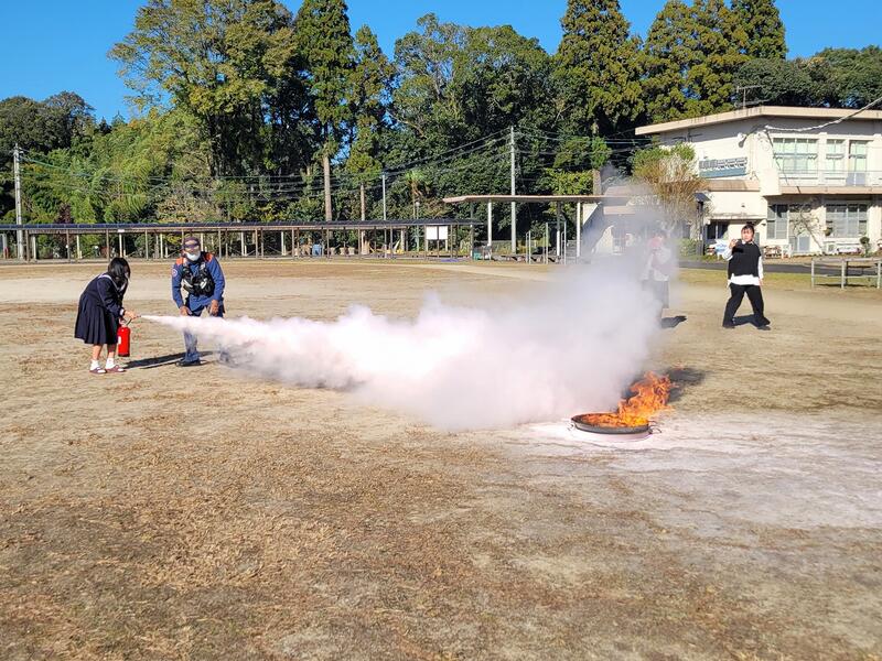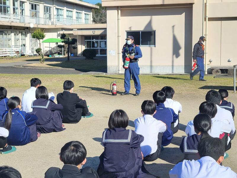 12月3日(水)、学校で火災が発生したときに備え、野尻分遣所から3名の方にお越しいただき避難訓練を実施しました。生徒たちは、無言で素早く避難することができ、分遣所の方からも、お褒めの言葉をいただきました。また、避難後は、消火活動訓練も実施していただきました。分遣所の皆様、お忙しい中ありがとうございました。