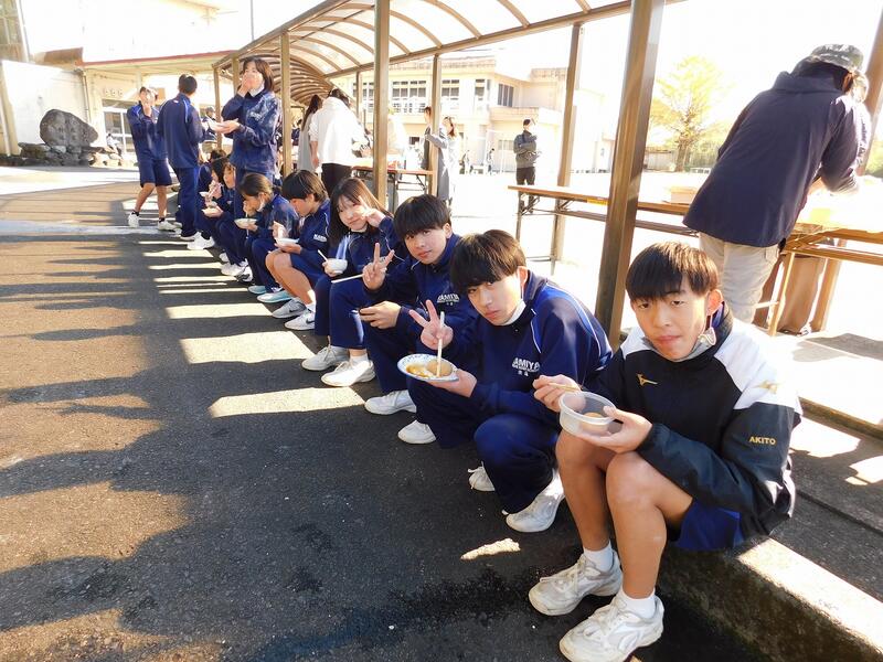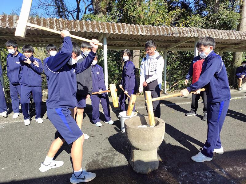 12月14日(日)、校内駅伝大会・餅つき会を実施しました。校内駅伝大会は、全校生徒を対象に男女混合チームを5チーム編成して実施しましたが、見事優勝したAチームだけでなく、全校生徒一人ひとりが1秒でもタイム縮めようとする姿を見ることができ、大変うれしい気持ちになりました。その後の餅つき会では、各学年力を合わせて餅をつき、みんなでおいしいお餅をいただきました。研修広報部の皆様をはじめ、参加していただいた保護者の皆様、ありがとうございました。