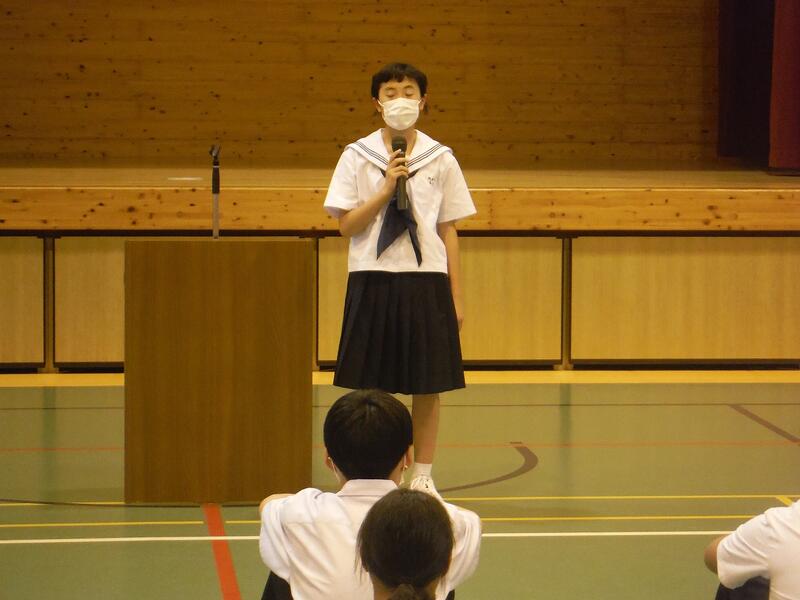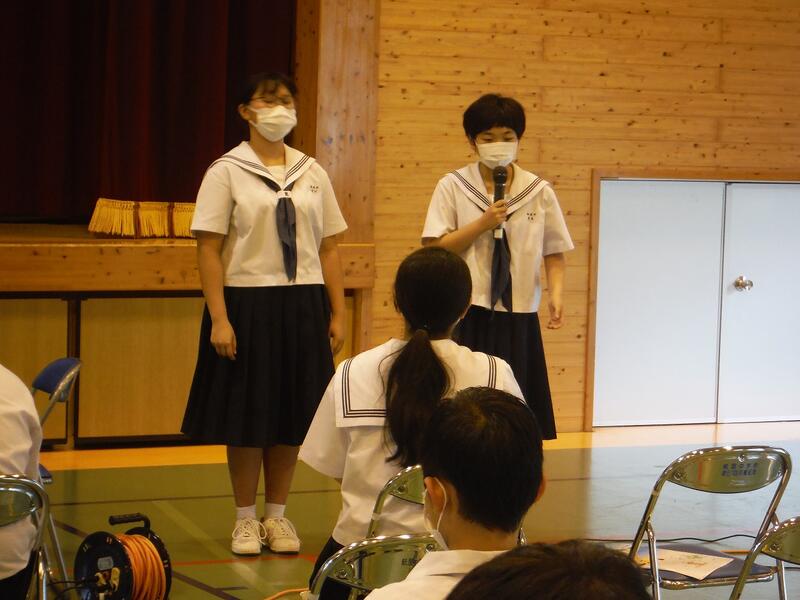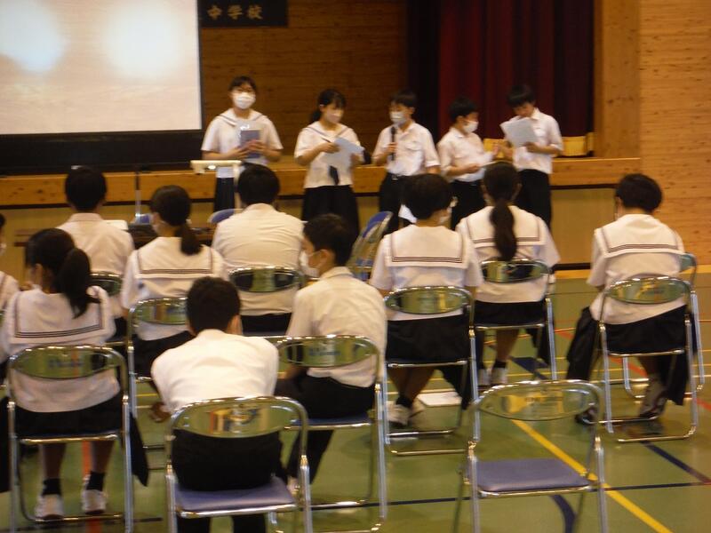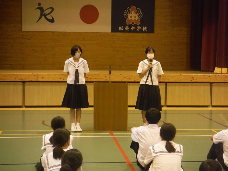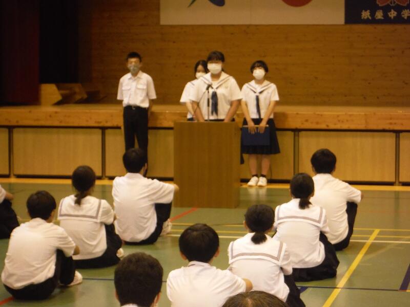 生徒会長のあいさつ、各委員会からの9月の目標と具体策が発表されました。