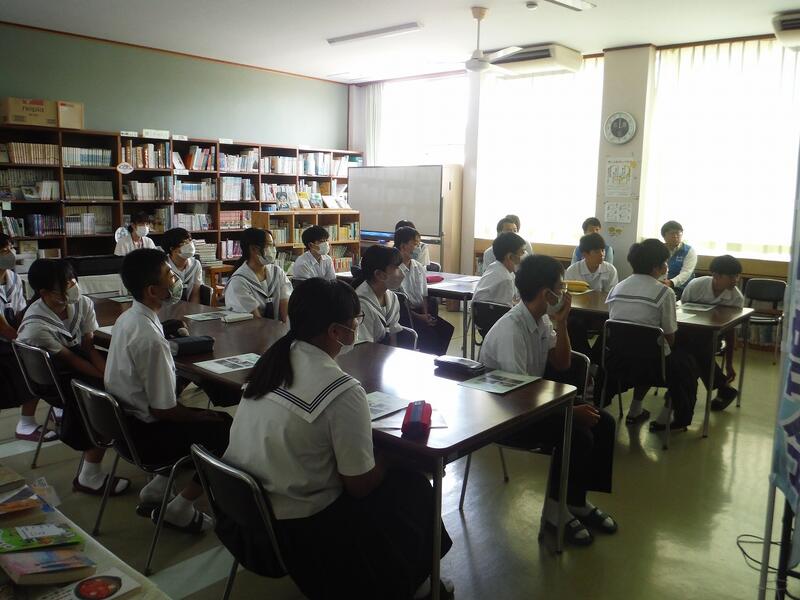 生徒たちは、後ろから身を乗り出しながら絵本を見つめ、お話に聞き入っていました。