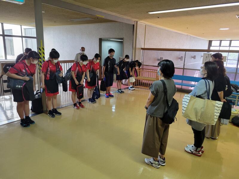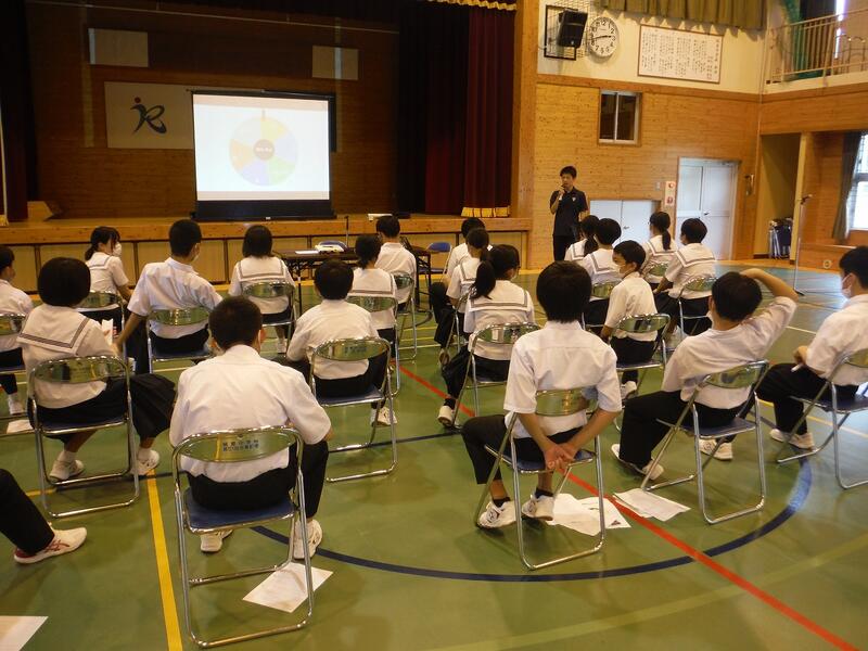 本校はスポーツをしている生徒が多く、遠くから歩いて登校する生徒もいるため、ストレッチを直接ご指導いただくことは大変意義のあることだと思います。生徒たちも保護者の方々も興味深そうに、かつ楽しそうにストレッチに取り組んでいました。最後に、生徒会から2年生の下湯 聖夜さんが代表でお礼の言葉を述べました。