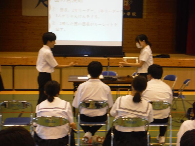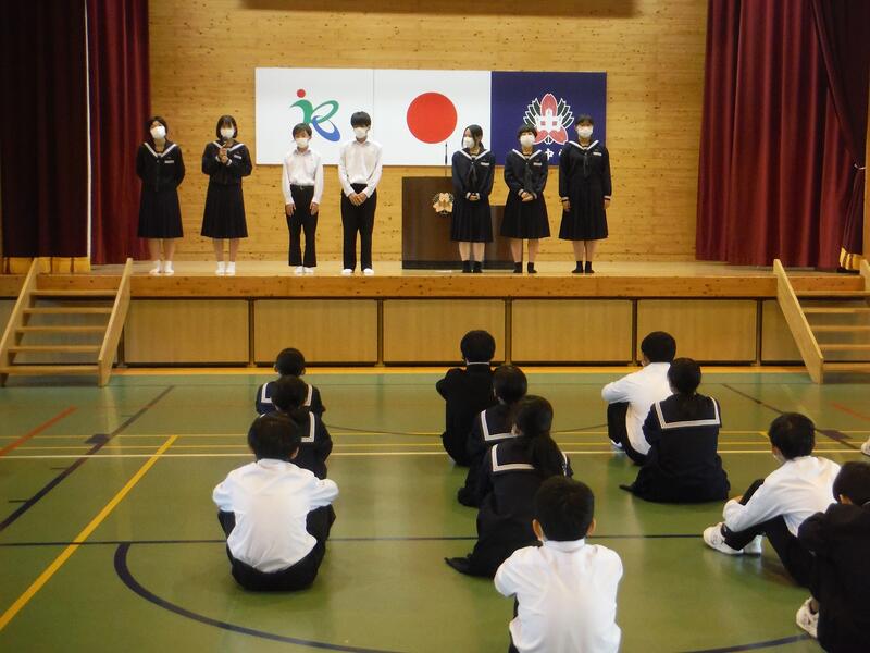 はじめに、現役員最後の生徒集会が行われ、各委員会11月の目標や実行対策の確認がありました。