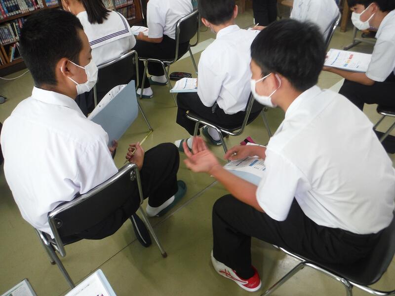 午後から各学級の副担任による授業が行われ、1年A組は有田先生の英語科の授業、2年A組は和田先生の理科の授業、3年A組は壱岐先生の国語科の授業を参観していただきました。
