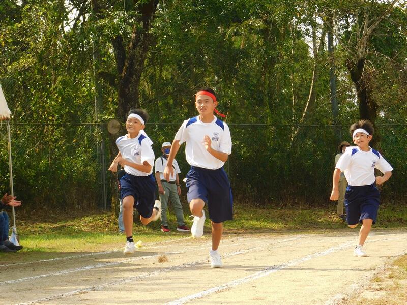 前日までの不安定な天候からは想像できないほど晴天に恵まれ、また多くの保護者や地域の方々、ご来賓の方々に見守っていただきながら、小中学校の子どもたちはのびのびと競技に取り組みました。