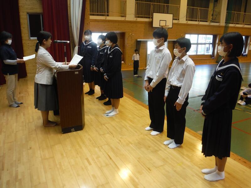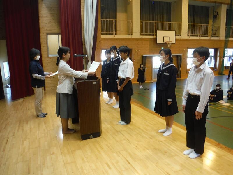 任命式では、新役員の初々しいあいさつがあり、任命状が手渡されて新しい生徒会のスタートを切ることができました。