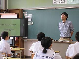 平成30年5月25日(金)5校時に、1年(6名)、2年(11名)計17名を対象に、標記の講話を開催しました。講師として、宮崎日日新聞社小林支局長の新坂英伸氏をお招きして、「働くことの意義や体験活動の中で心がけることについて」の講話がありました。わかりやすく、エピソードもまじえ、貴重な話が聞けて、とても有意義な時間となりました。
